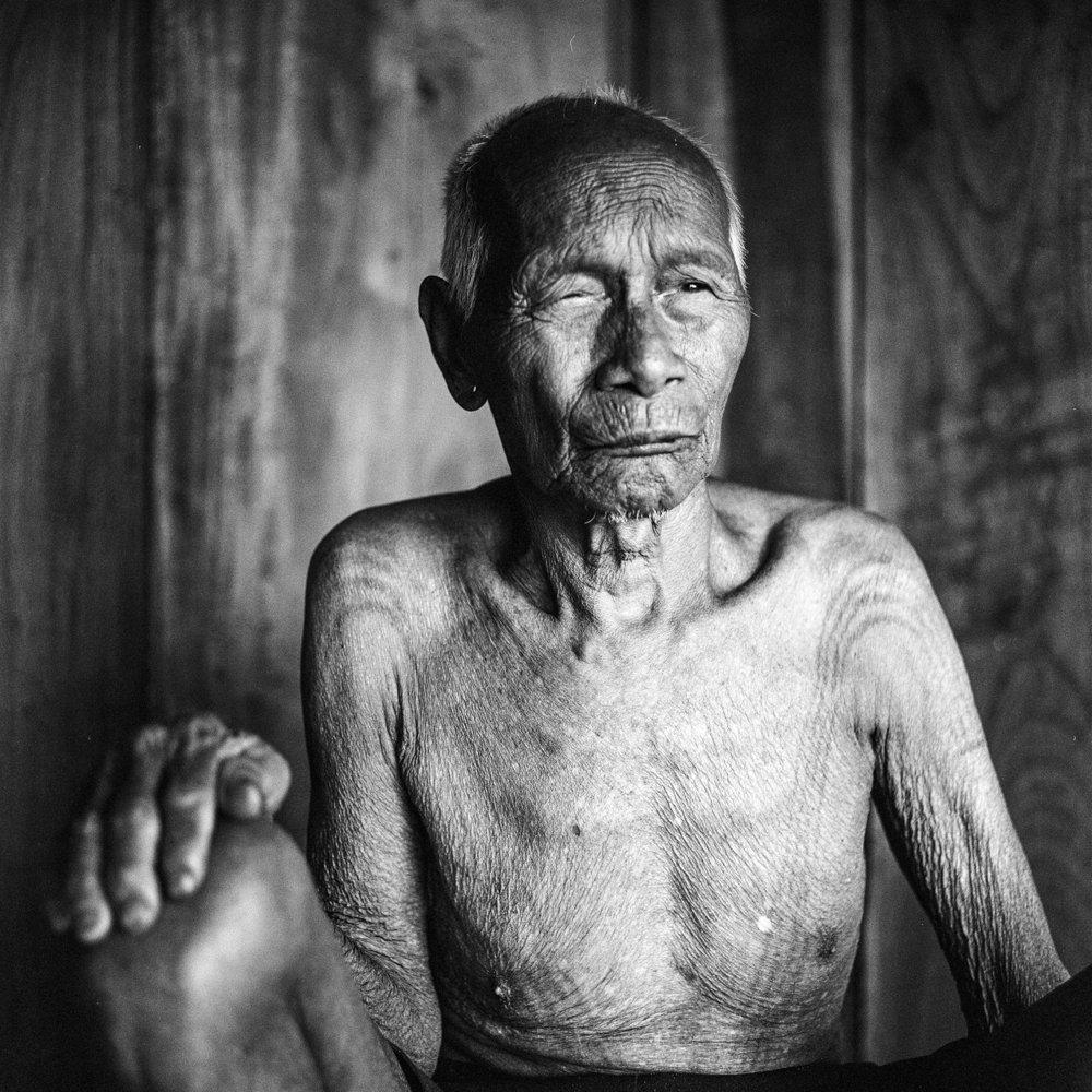 Shot in squared Black & White format using an old Rolleiflex camera, Patrick gives a timeless feel to these portraits of the Konyaks. Hauntingly reminiscent of a time gone by, Patrick is sure to capture something in them that reveals their surprising contemporeinity.